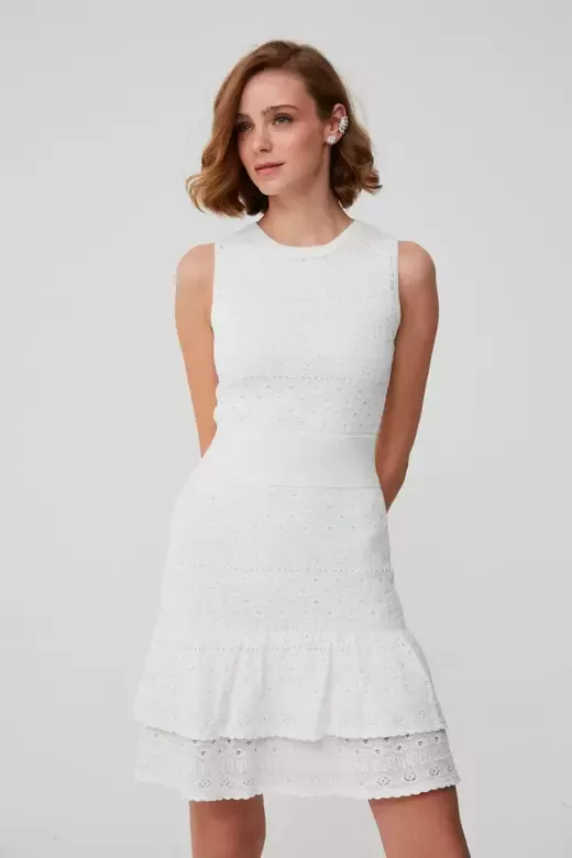 Fırfır Detaylı Beyaz Mini Elbise