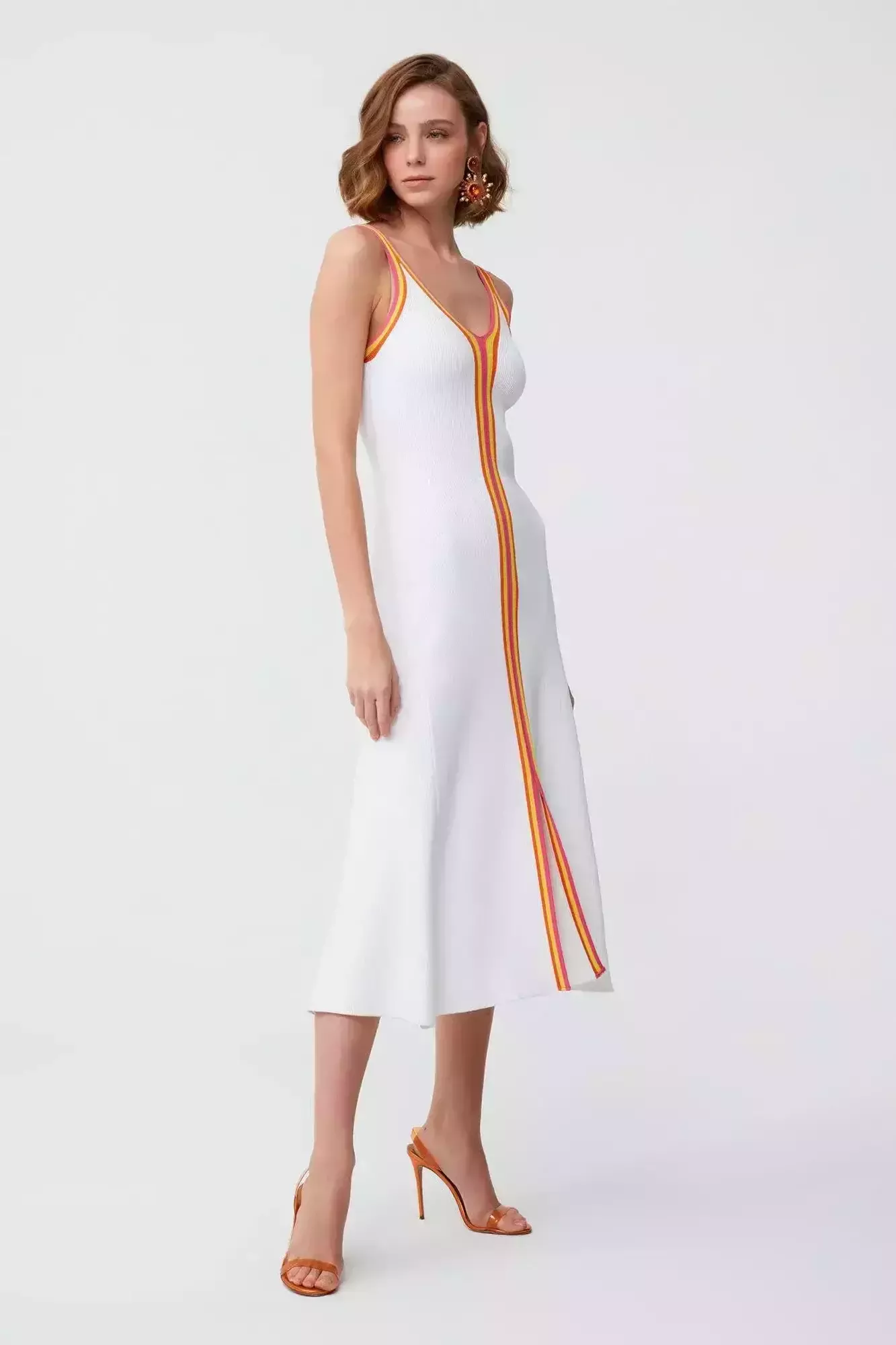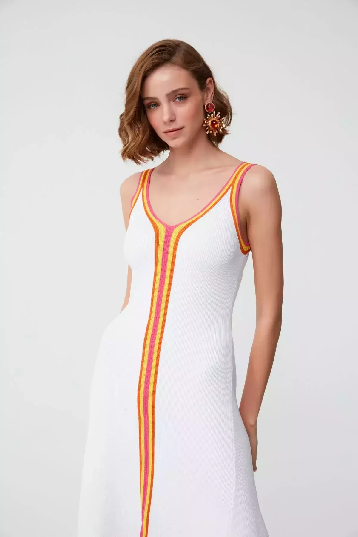 V Yaka Kolsuz Örme Elbise